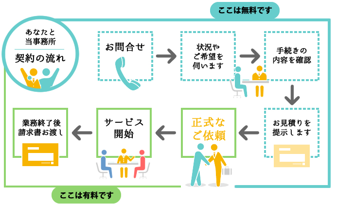 エムケイ法務事務所では、ご相談に遠慮と料金はいりません!お気軽にお問合せください。