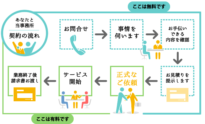 エムケイ法務事務所では、ご相談に遠慮と料金は いりません! お気軽にお問合せください。